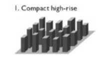 LCZ 1 – Compact High-Rise: This class comprises densely built urban areas characterized by tall buildings, more than 9 stories, with a high population density and limited or no vegetation cover. These areas typically include commercial and central business districts dominated by skyscrapers and high-rise residential buildings. |
